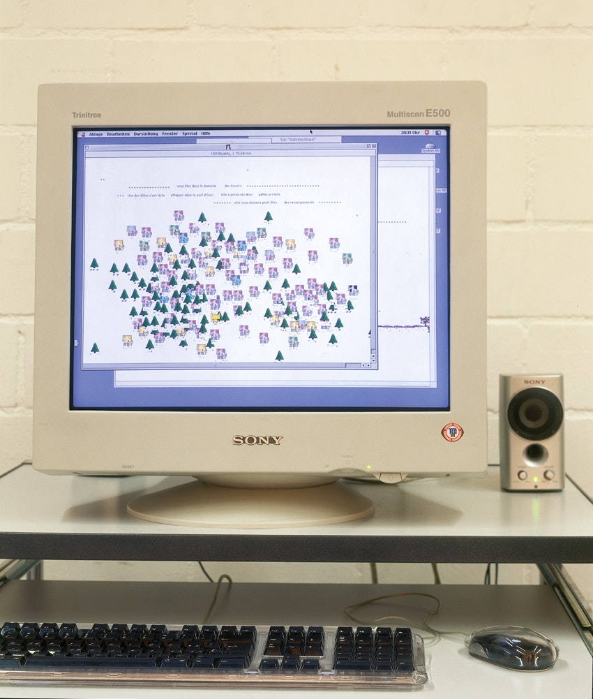 Le designer multimédia Nicolas Party présente, avec 'Turimgot', un jeu pour ordinateur qui se base sur Mac Finder, et qui utilise la structure d'ordre et le langage informatique propre au système d'exploitation. Dans une première fenêtre de dialogue, on bénéficie d'une introduction, d'une explication et d'un 'sac à information'. Les joueuses et les joueurs sont invités à sauver le monde de Turimgot, victime de catastrophes et de soulèvements, à l'aide d'informations collectées dans sept pays différents, et d'énigmes à résoudre. Sans grands effets visuels, mais avec un graphisme discret, délicat et très économe, Nicolas Party construit les paysages ludiques à parcourir. C'est un jeu dont la structure complexe est attractive surtout pour une communauté de joueurs invétérés. En comparaison avec les jeux électroniques traditionnels, 'Turimgot' fixe un tempo inhabituellement lent, ce qui consonne parfaitement avec le langage poétique du texte et des images.