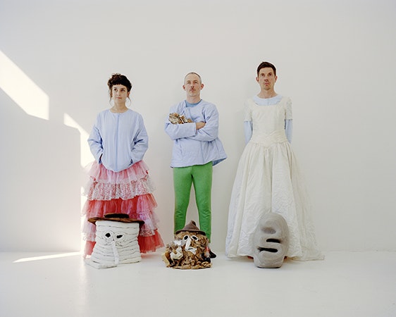 En 2014, le comédien et dramaturge de 34 ans Marius Schaffter, le scénographe et artiste visuel de 33 ans Jérôme Stünzi et l’autrice, artiste visuelle et scénographe de 30 ans Sarah André, alias André André, créent le collectif théâtral genevois Old Masters. Concevant la représentation théâtrale comme une œuvre plastique totale, ils créent des univers à l’esthétique puissante, insolite et radicale. Pour chaque projet, ils s’approprient et réagencent les pratiques et les discours les plus variés – qu’ils soient artistiques, politiques, scientifiques ou liés au quotidien. À l’aide de ses armes favorites que sont l’absurde, la sincérité, la bienveillance, l’ironie, la beauté, la tristesse et la douceur, Old Masters invite à faire l’expérience, collectivement, de ce que pourrait être la liberté aujourd’hui, une liberté enracinée, changeante, toujours à la recherche d’elle-même. Les trois membres du collectif réalisent aussi leurs propres projets et collaborent avec d’autres artistes comme Nicholas Stücklin, Sofia Teillet, Joana Oliveira, Charlotte Herzig, Jonas Bühler ou encore Jérémy Chevalier.