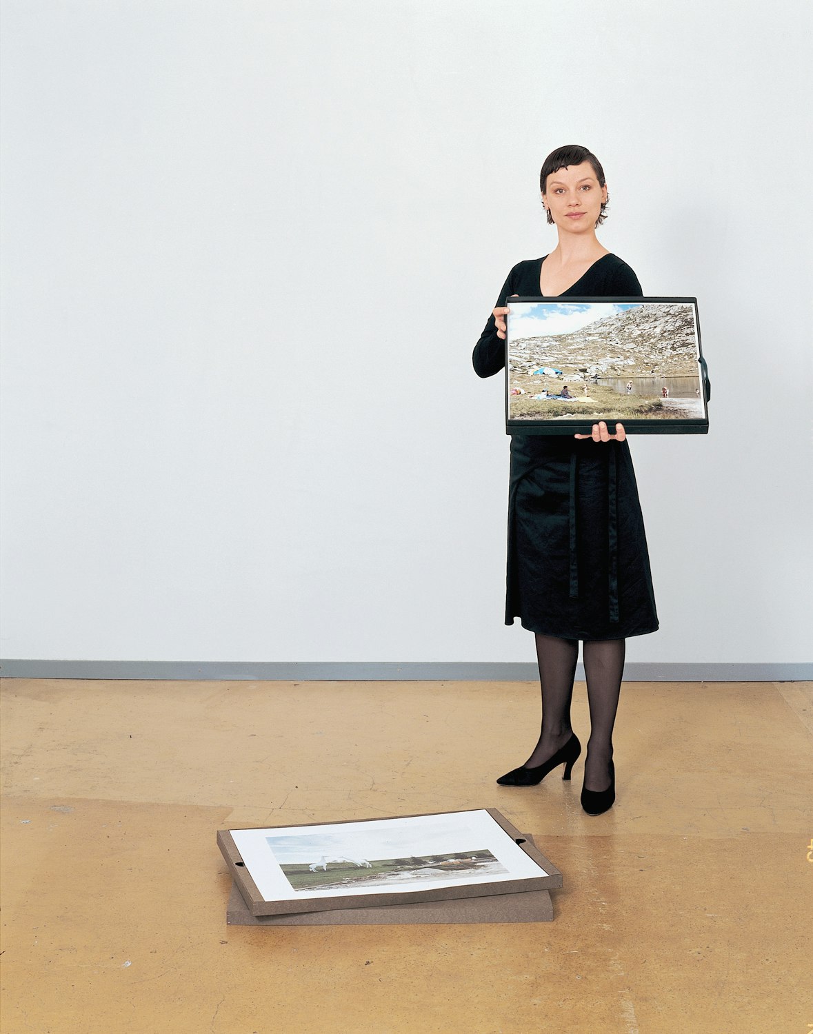 Les deux voyageurs couchés sur des chaises-longues sous une ligne à haute tension sur un col ou les girafes synthétiques blanches en plein milieu d'un paysage non cultivé sont pareillement détachés de toute réalité actuelle - là encore des décalages par lesquels une pointe d'ironie s'infiltre dans le sentiment d'irréalité distanciée. Comme s'il se mouvait dans des paysages de maquettes construits de toutes pièces, Oliver Lang focalise sur des situations qui acquièrent dans ces relations un caractère prononcé d'objets. La structure simple et souvent fort rythmique des images amplifie l'impression que ces moments sont construits et révèle par là même la griffe très claire du photographe.