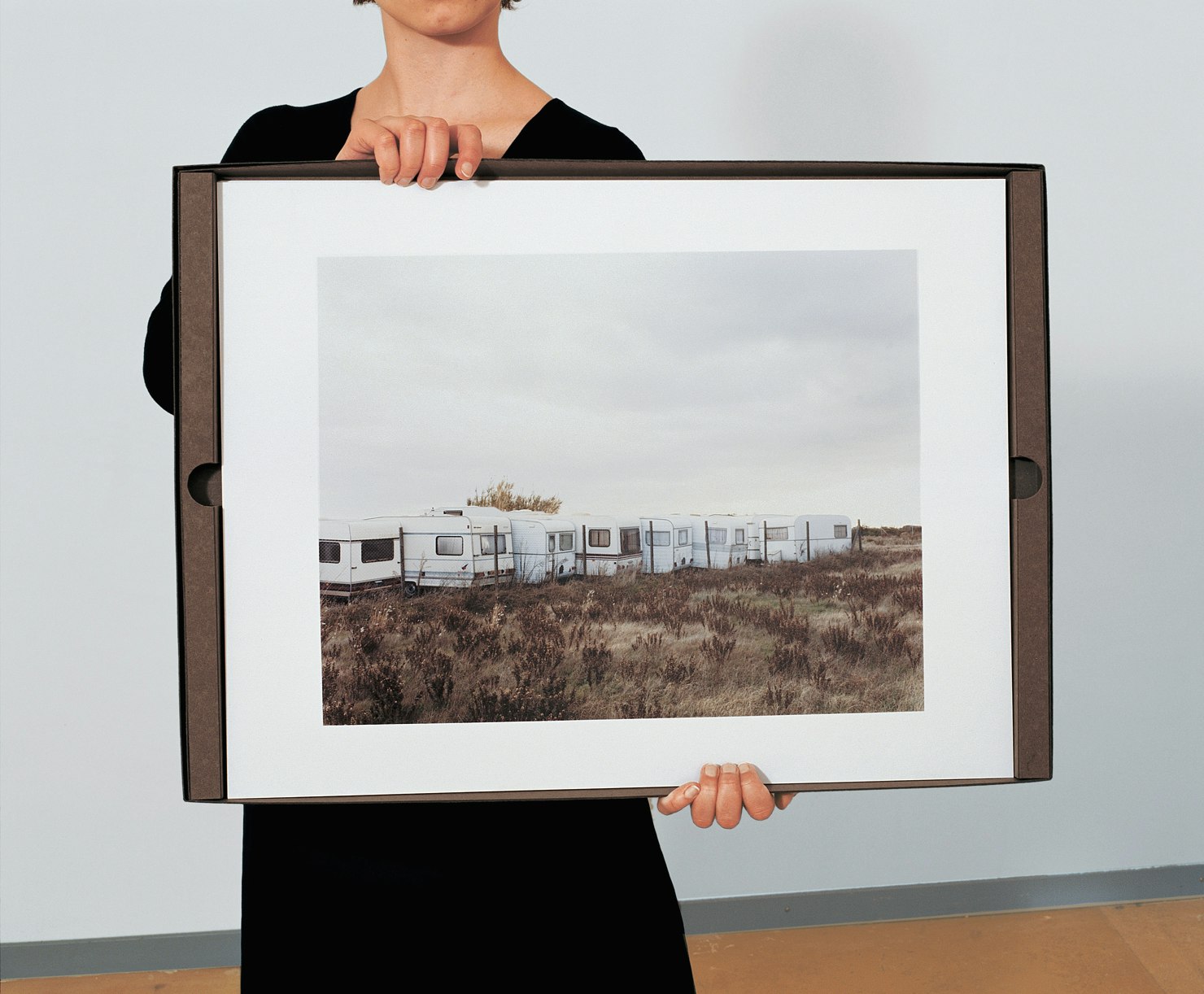 Avec de nombreuses images de ce groupe segmenté mais très cohérent d'œuvres photographiques libres, Oliver Lang nous transporte dans univers troublant. Ainsi, par exemple, des rangées de caravanes ou de maisons individuelles, dont rien ne perturbe l'uniformité, sont situées dans des endroits apparemment totalement déserts - rien ne trahit la présence d'habitantes et d'habitants ou d'autres formes de vie et ne vient perturber la ‘cleanness' de ces complexes.