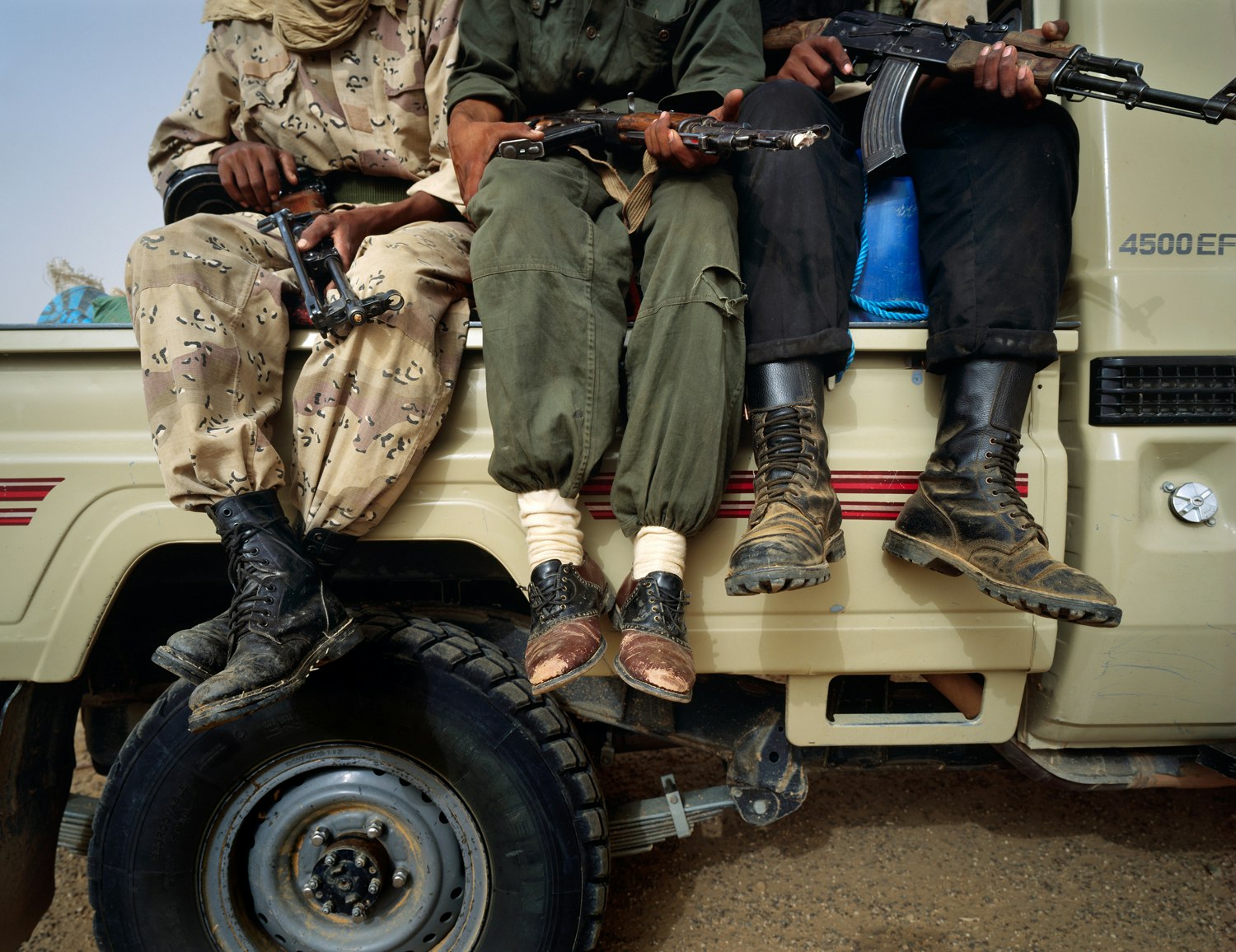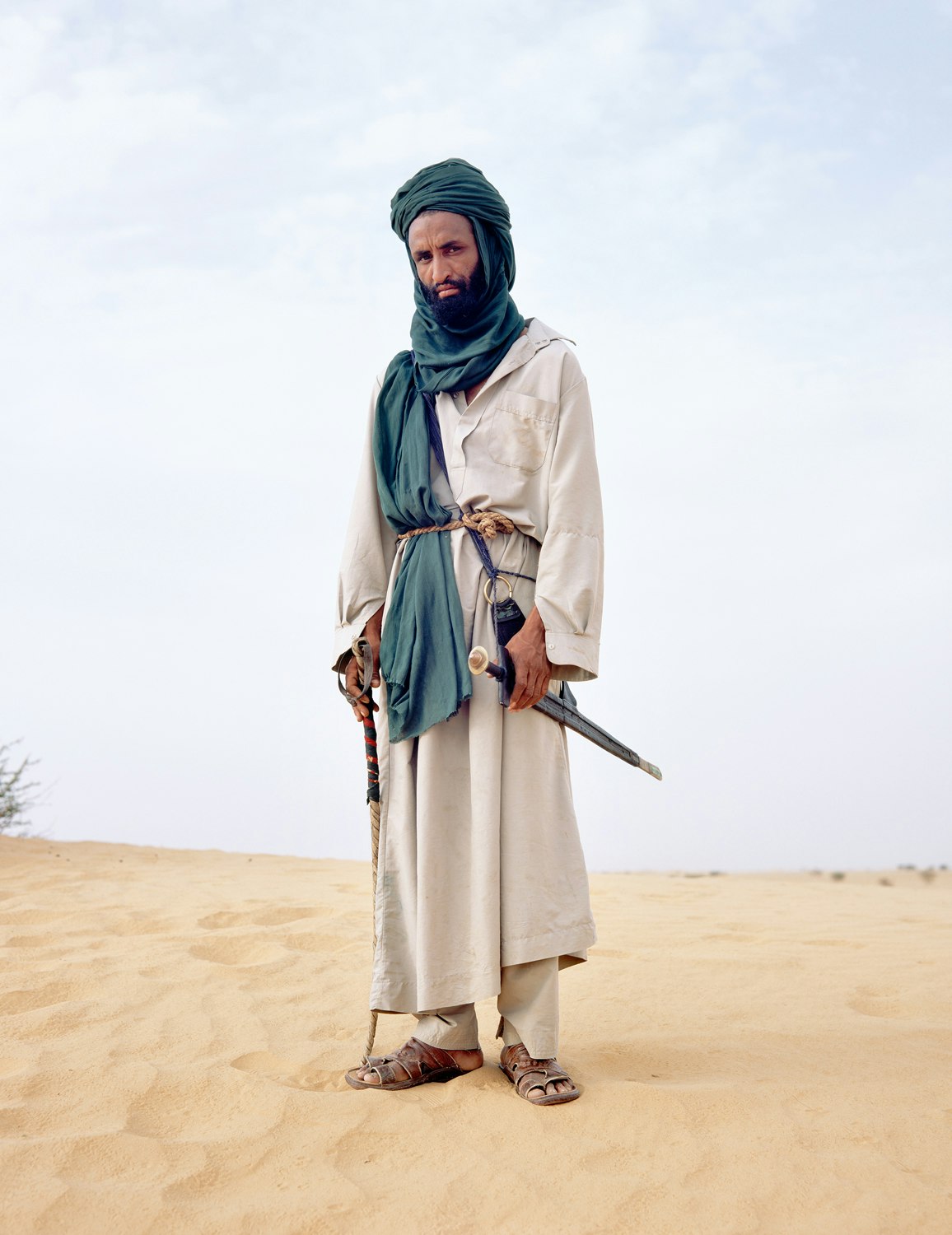 Comment documenter correctement la vie des rebelles du Sahel? Le Lausannois Philippe Dudouit a choisi la classique photographie de reportage pour aller à la rencontre d'une terre qui fait partie des régions les plus pauvres et les plus inhospitalières du monde, nommant son projet 'Sahel – The Dynamics of Dust'. En 2008, il a passé trois mois avec les rebelles touaregs, au nord du Mali et du Niger, et depuis, il y retourne de temps à autre – le projet est un 'work in progress'. Dudouit ramène des images saisissantes de cette zone de conflits oubliée. Lorsque les anciens nomades du Sahel se sont sédentarisés, le trafic d'armes et de drogue a pris le dessus. Le tourisme a fini par s'effondrer totalement; des groupes d'islamistes fondamentalistes viennent recruter leurs jeunes troupes dans ces régions, des groupes de rebelles combattent contre les gouvernements centraux du Mali et du Niger. Philippe Dudouit évite de céder à la fascination de l'exotisme et crée des photos sereines, dénuées de sensationnel. Une épave d'avion dans le désert, une tour renversée et déjà à moitié engloutie par le sable, un tank échoué dans la cour d'un bâtiment avec, à côté, des soldats en arme. Ses portraits, d'enfants et de jeunes souvent, sont pleins de tact. Un jeune homme pose fièrement, portant un vêtement de batik rouge brun, un turban beige et des sandales de plastique blanches. La photo n'a rien de spectaculaire. Ce n'est qu'au deuxième regard que l'on remarque le sac militaire sur sa poitrine, probablement rempli de munition. Une autre photo montre Mohammed, jeune homme au turban vert, tongs bleues et T-shirt rouge orange avec l'inscription 'King's County'. Lui – et cela non plus, on ne le voit pas d'emblée – tient en mains une Kalachnikov. Il se dit 'indépendant' et vit dans le nord du Niger, dans une zone où sévissent les rebelles et une guerre civile largement ignorée de l'Occident. Les photos de cet artiste, formé à l'Ecole de photographie de Vevey, sont tranquilles, mais impressionnantes. Elles demeurent gravées dans notre mémoire.