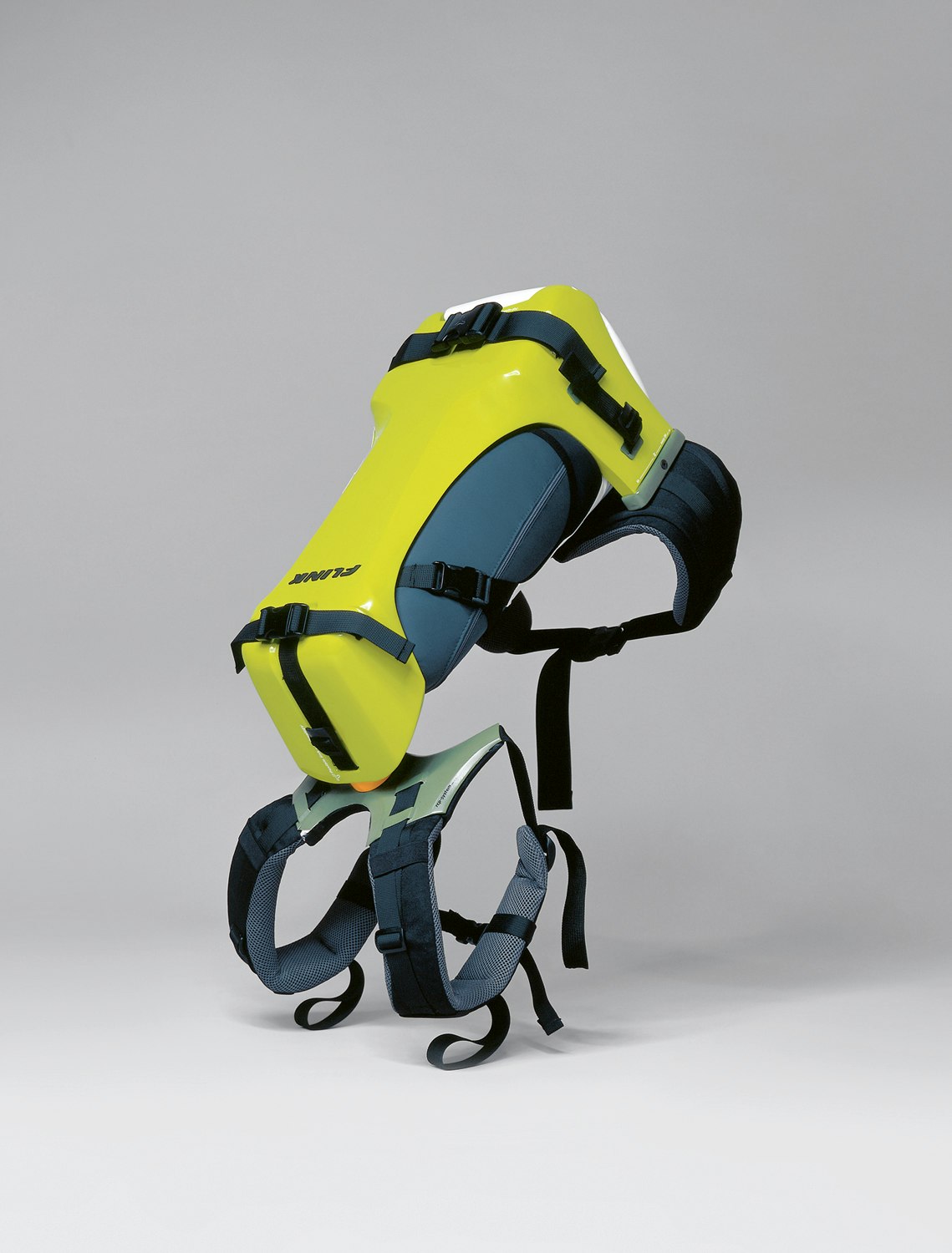 Avec sa couleur bien repérable, jaune vert, 'Flink' attire le regard et présente au moins deux particularités: d'une part il dispose d'une coque extérieure dure, en polyuréthane et fibre de verre. Un emprunt au monde animal? On pense tout de suite à un scarabée, idéalement protégé par son exosquelette. Il en va de même pour les objets délicats comme les appareils de photo qui, dans leur sacoche de transport, peuvent, derrière leur coquille de protection, résister sans dommage à des chutes. Comme le sac ne repose pas directement sur le corps, le dos reste bien ventilé. Sur sa coque dure, on peut fixer des skis, des chaussures, un bâton ou un piolet. D'autre part, ce sac qui ne pèse que 2,5 kg dispose d'une rotule à la hauteur des épaules, qui permet une liberté de mouvement maximale. Ainsi, les torsions sportives ou les mouvements de bascule latéraux sont toujours possibles.