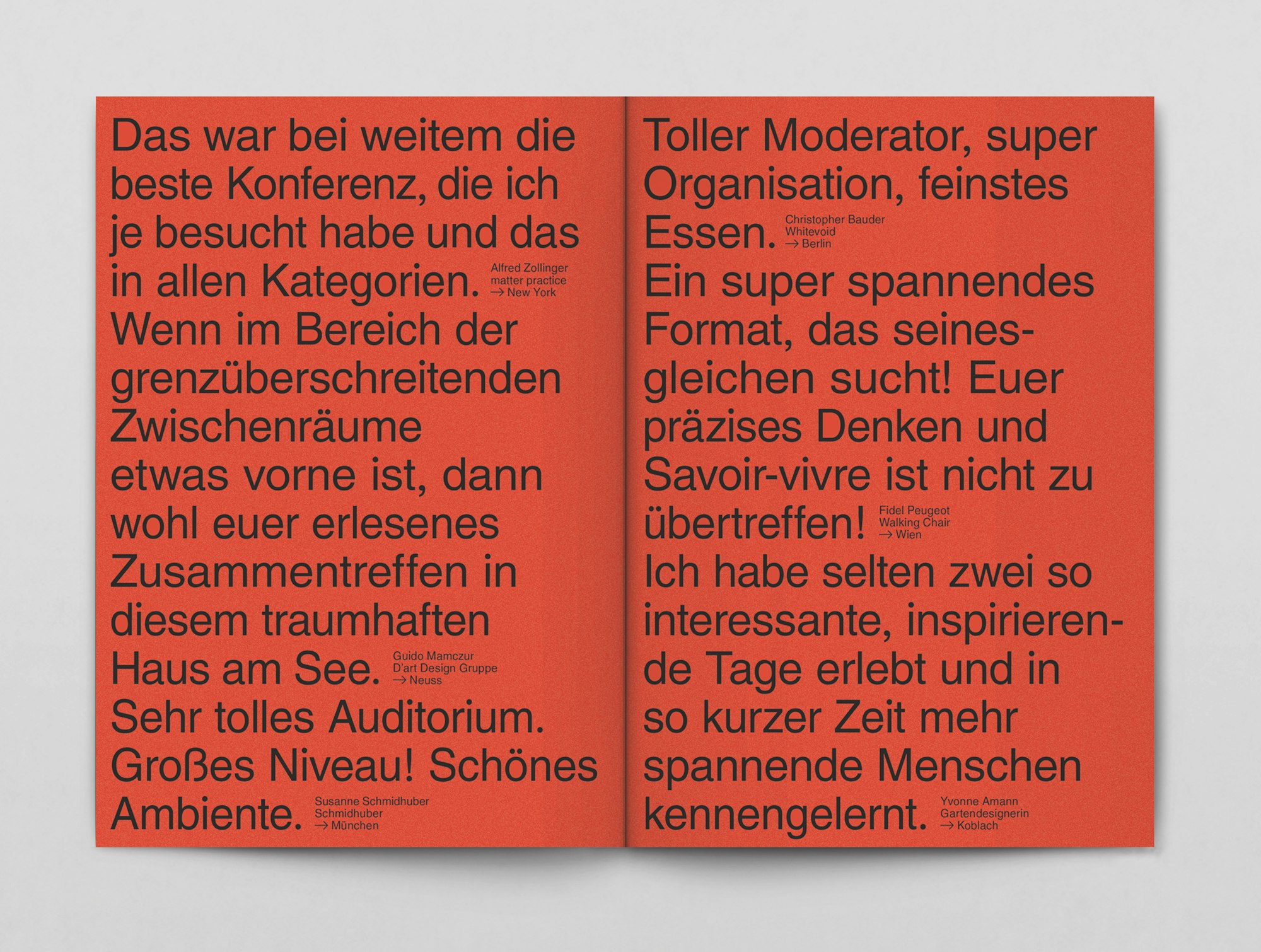 Sur deux écrans grands formats séduisants, Felix Pfäffli, Raphael Leutenegger et Daniel Peter présentent une sélection impressionnante de posters, de publicités et de couvertures pour une multitude de clients locaux et internationaux. De leur approche de la mise en page, souvent systématique, résulte un langage visuel placé entre le conçu et le programmé, sans révéler la source de leur origine. Studio Feixen explore et expérimente les aspects du mouvement et de l'animation à travers leurs travaux, ajoutant à leur langage visuel une fluidité habile et amorphe.