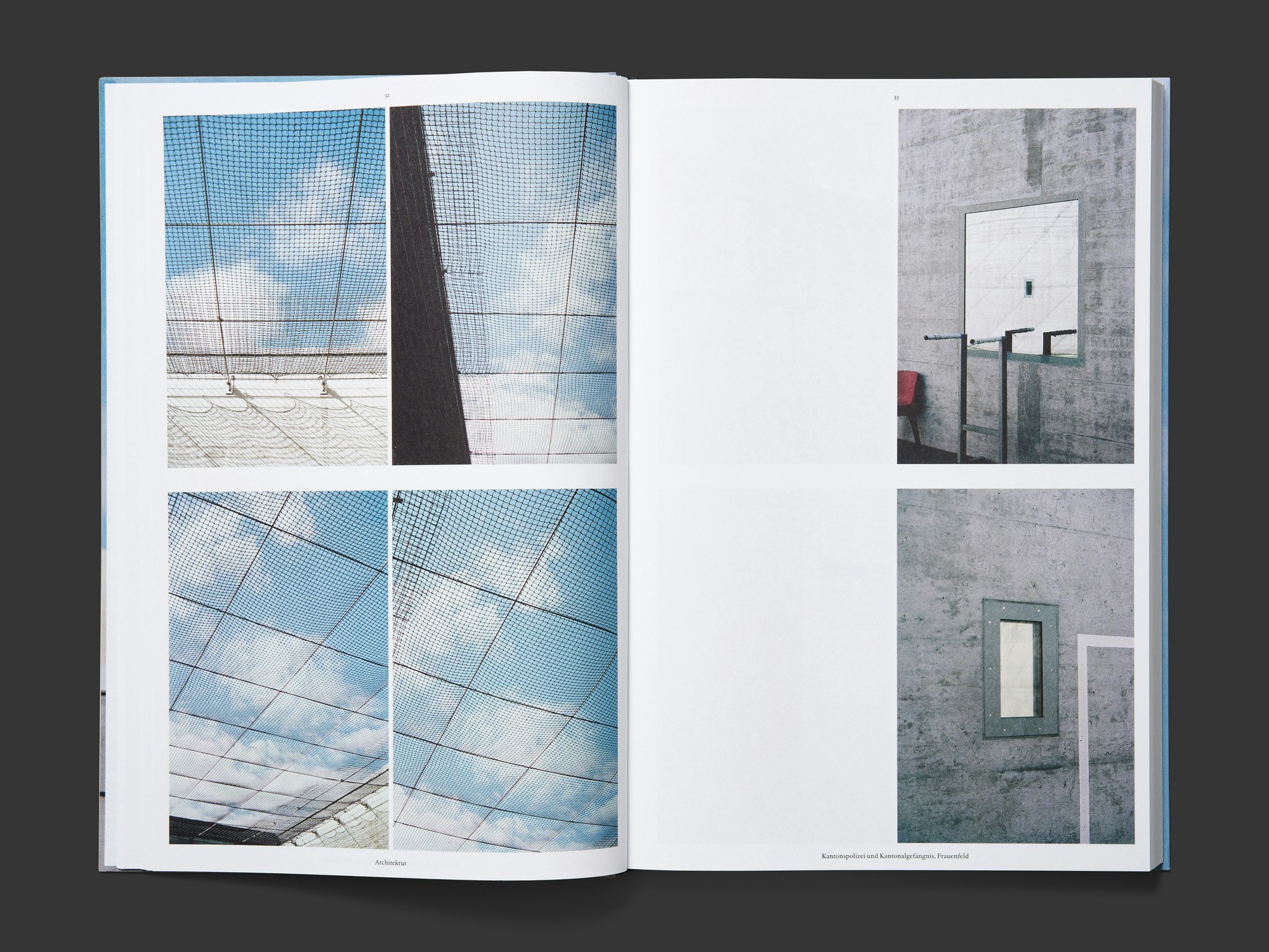 L’architecte Thomas K. Keller, installé en Suisse orientale, publie une riche monographie très marquée par le langage visuel du photographe mandaté pour les prises de vue. Hormis quelques plans sporadiques et de courts essais, la majeure partie de l’ouvrage est composée de centaines de photographies, ordonnées de manière très régulière selon quatre tailles et grilles différentes. Souvent conçues par séries, voire répétitives, les photos font excellemment bien ressortir la spatialité des bâtiments et des quartiers urbains autant que les détails architecturaux, à travers l’utilisation de techniques cinématographiques telles que mouvements de caméra, accélérations et ralentissements, zooms et dézooms. Le graphisme très contrôlé semble toujours procéder de choix mûrement réfléchis, et intercale harmonieusement les textes (en caractères avec empattement relativement petits) et les plans (très finement dessinés) entre les pages de photographies. Le format relativement étroit du livre et les compositions sur des colonnes de texte très hautes proposent des variations autour des différents espaces architecturaux, sans que ces clins d’oeil ne paraissent trop insistants. Et toute cette force et rigidité n’empêchent pas la beauté.