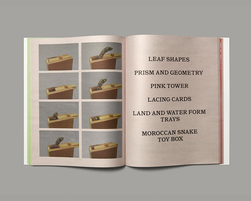Cette publication sur papier journal de couleur, à la couverture souple blanche et rouge à rabats, documente et contextualise de manière très instructive une performance de l’artiste marocaine Yto Barrada. Ce travail de commande pour la Biennale Performa de New York en 2017 traitait, en le restituant par-delà les générations, du premier voyage en Amérique de la mère de l’artiste, qui en 1966, malgré son engagement socialiste, avait obtenu, avec 52 autres jeunes membres de l’élite des États africains, de faire un voyage culturel aux États-Unis. Dans la première partie de la publication sont imprimés sur papier vert de nombreux documents historiques sur ce voyage, tels des formulaires d’inscription, des rapports, des évaluations, des photos, etc., la plupart du temps sur une page avec marges. La deuxième partie documente, sur papier gris, la performance, avec des photographies de scène et d’objets, un script et une interview de l’artiste. Sur papier rose, enfin, la plupart du temps sur une page, on présente un matériel historique, cette fois sur la situation des Afro-Américains dans les années soixante. La documentation et la présentation reflètent excellemment la pratique artistique, et sur presque chaque page nous sont offerts des moments fascinants. Étant donné l’importance de la galerie qui se trouve derrière le projet, la publication apparaît agréablement sobre.