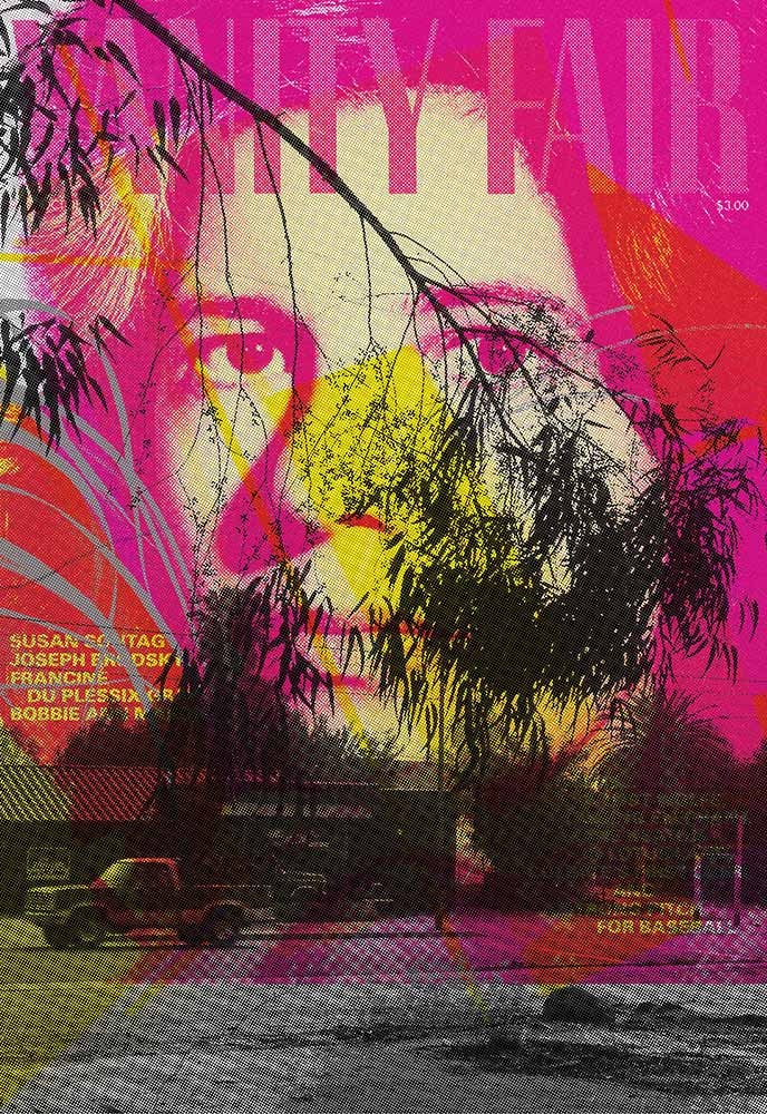 Il a sélectionné des modèles dans les archives de la collection, les a combinés et en a fait des affiches au format français (1200 x 1760 mm). Il s’est imposé trois règles précises : ne se servir que des couleurs cyan, rose, jaune, noir et argent, ne pas utiliser plus d’une fois la même couleur et ne pas superposer plus de cinq photos.