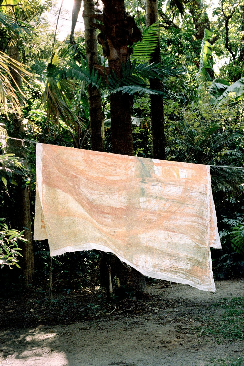 Les particularités de ce contexte de production spécifique se font également sentir dans le cadre de ses expositions, dans lesquelles les tableaux suspendus ou accrochés dans l’espace s’assemblent pour former les parties d’une immense sculpture textile. S’y déplacer équivaut à une expérience immersive qui nous fait voyager dans la lointaine et dense forêt tropicale.