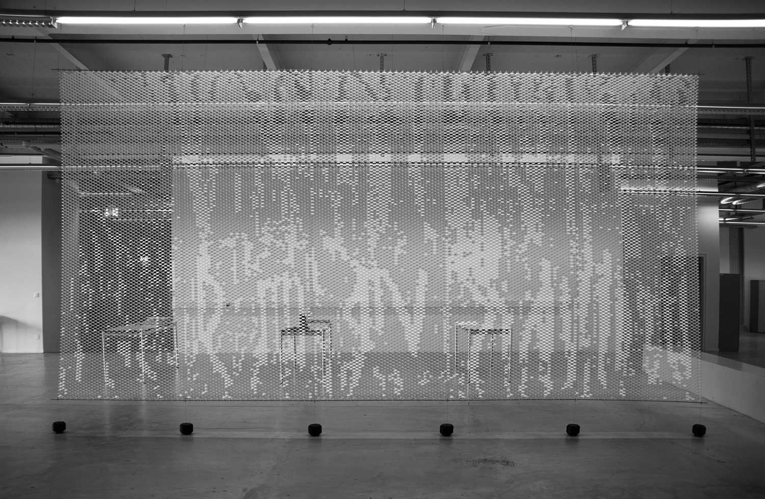 Ainsi, d’un simple geste de la main, ou à l’aide d’une spatule spéciale, chaque lamelle peut changer de position. Suivant les circonstances, l’espace ou l’incidence lumineuse, il est possible de créer un motif, de dessiner une forme ou de «croquer» n’importe quel sujet sur cette cloison.