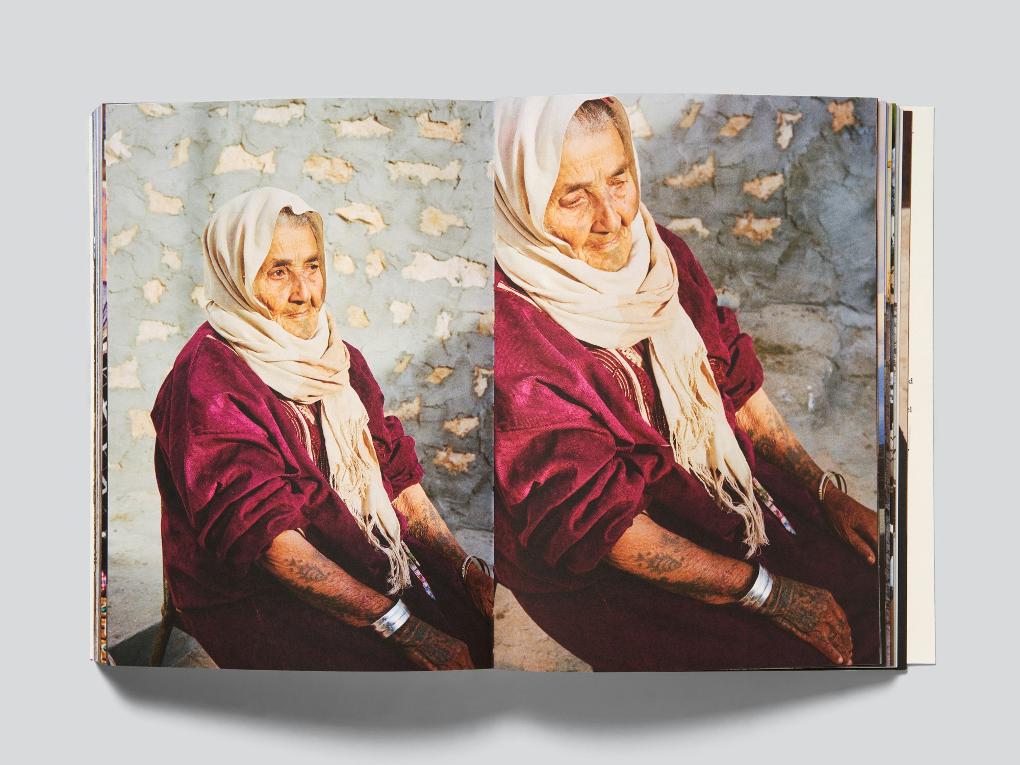 Questo pesante volume fotografico di medio formato con copertina flessibile si avvale di una redazione delle immagini radicale, in cui 320 foto a colori a tutta pagina raccontano da sole una storia. Gli scatti sono di Yumna Al-Arashi, fotografa e regista americana con origini yemenite ed egiziane che ha studiato anche a Zurigo. In un viaggio che l’ha portata attraverso remote regioni del Nord Africa, ha fotografato donne anziane con tatuaggi ornamentali. I loro ritratti vengono proposti più volte in serie di scatti ripetitivi intervallati da immagini altrettanto ripetitive delle loro abitazioni e di paesaggi suggestivi, spesso molto spogli. La disposizione degli scatti sembra seguire la cronologia del viaggio e, poiché mancano didascalie o commenti, ne risulta una documentazione istantanea che nella maggior parte dei casi rinuncia alla selezione e all’interpretazione. Nel contempo, lo stratagemma delle ripetizioni permette di stabilire una sorta di contatto distanziato. Alcune informazioni sul contesto sono presentate in cinque sottili inserti di carta traslucida con scritte in arabo (in molti casi nel margine superiore) e in inglese (spesso in fondo alla pagina). La fotografa spiega per esempio come il tatuaggio della sua bisnonna l’abbia spinta a esplorare le decorazioni facciali di queste donne, generalmente utilizzate come codici in un contesto di analfabetismo diffuso. Alla luce di questo tacito modo di comunicare, la presentazione così immediata delle foto può essere letta come la scelta consapevole di adottare una prospettiva post-coloniale che per una volta rinuncia a interpretare e si espone alla casualità, proprio come fanno le donne ritratte. Tutte le decisioni grafiche, dalla scelta della carta alla composizione bilingue, fino alle accurate soluzioni tipografiche, sono al servizio delle fotografie presentate. L’immagine di copertina mostra una vecchia foto della bisnonna dell’autrice, che è stato il punto di partenza del viaggio, ma non è stata scattata da lei – anche questa una scelta decisamente radicale.