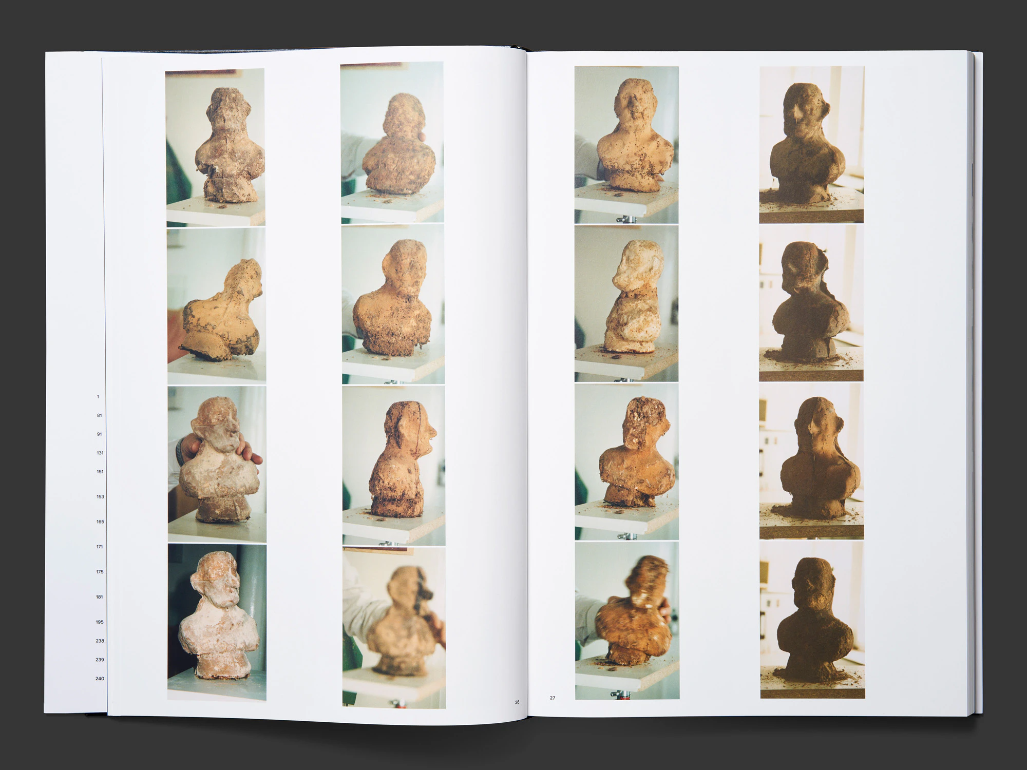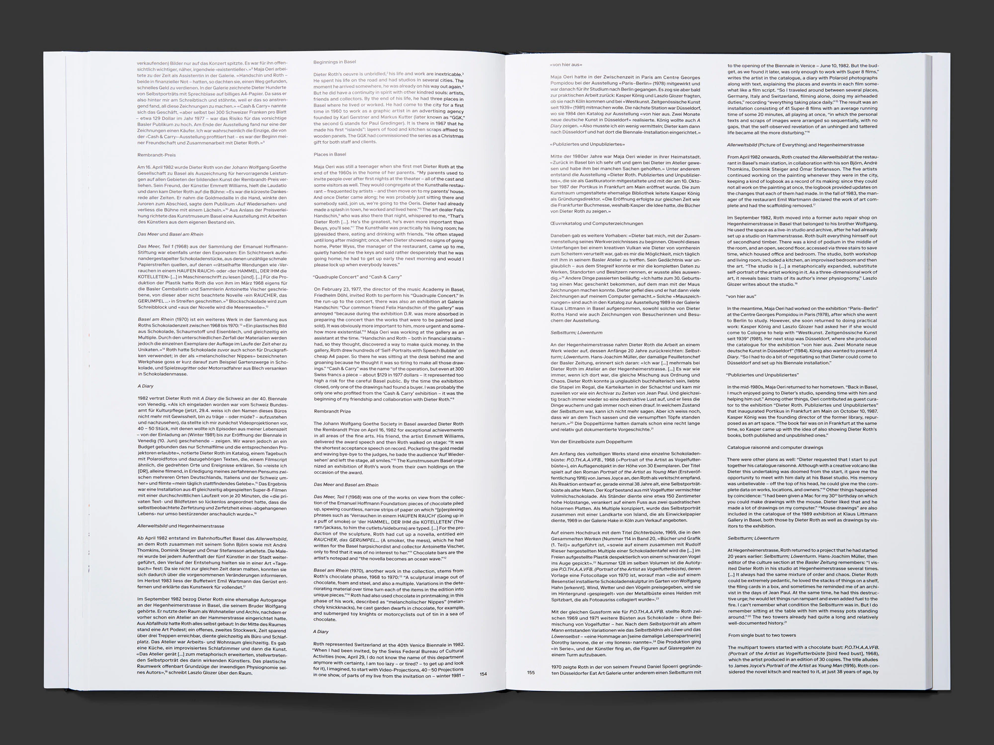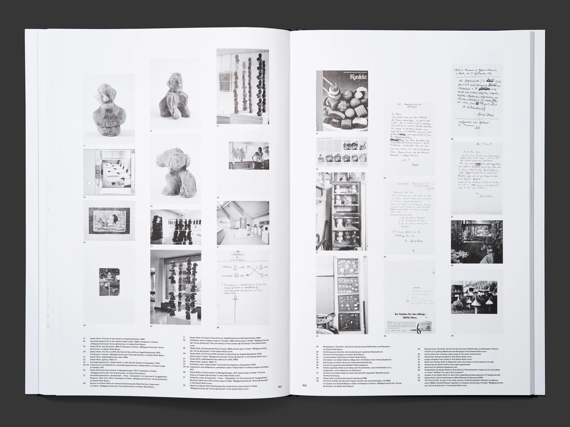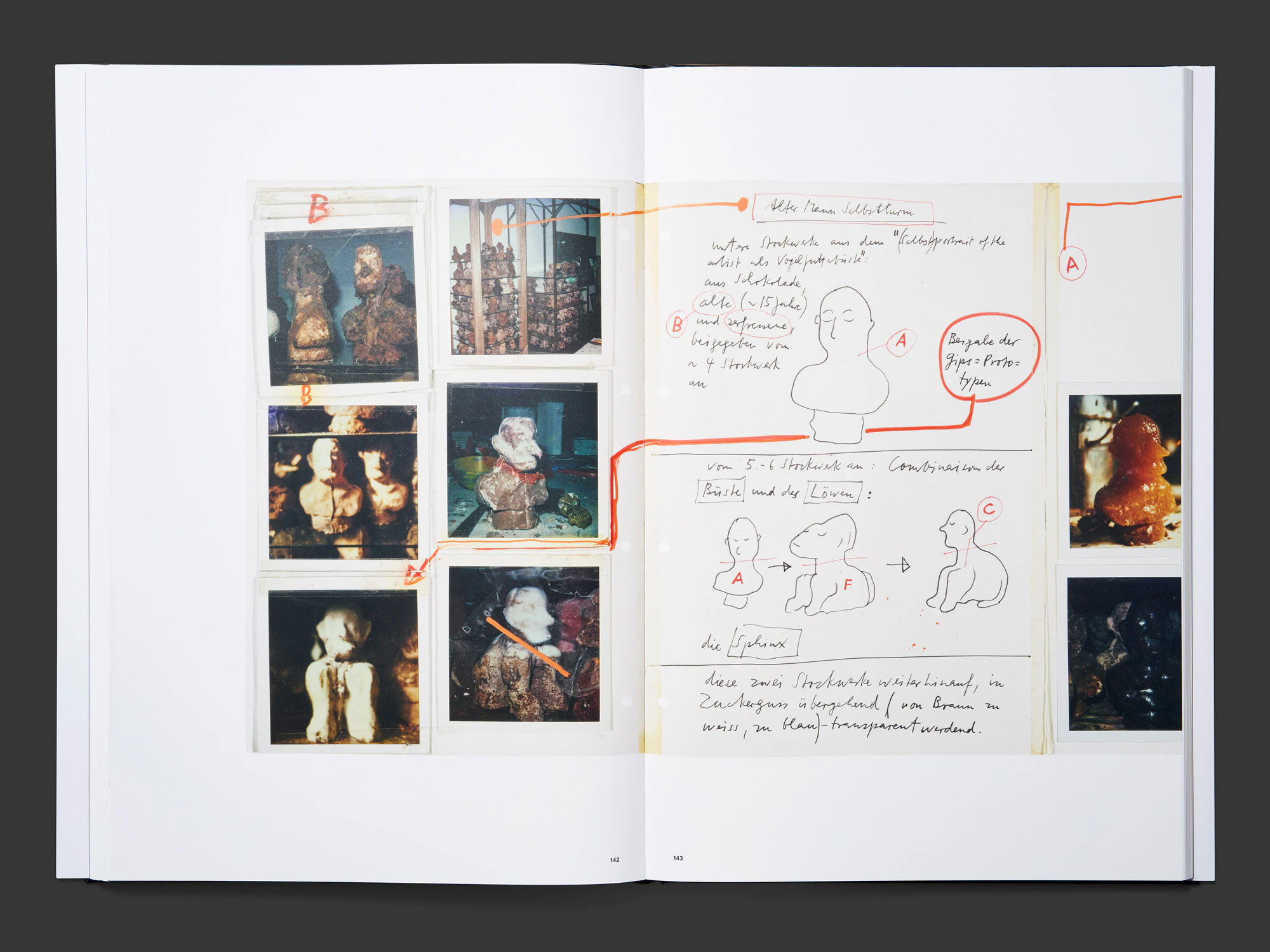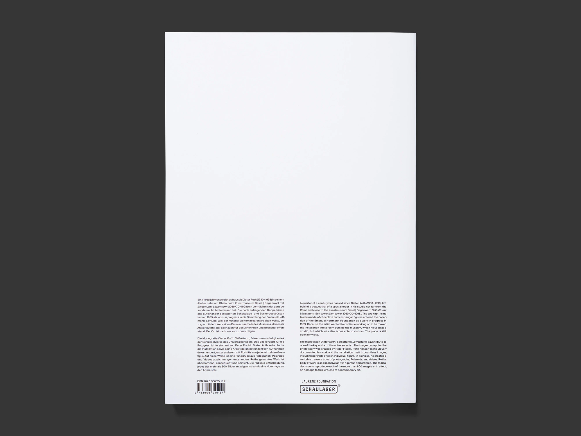 Molto più di un migliaio di piccole foto e fotogrammi mostrano in un formato verticale sovradimensionato il modo di lavorare maniacale e l’estetica sfrontata di Dieter Roth, senza che sembri un libro di Roth. Si documenta uno studio dell’artista a Basilea, successivamente venduto in toto, nel quale per molti anni erano state realizzate di quando in quando due serie di piccole sculture di cioccolato e zucchero – autoritratti e leoni, i Selbst e i Löwen del titolo –, poi conservate su scaffali a forma di torre. Dalla morte di Roth nel 1998, le sculture in lento decadimento sono rimaste accessibili fino a quando nel 2007 un guasto tecnico all’impianto di climatizzazione ne ha reso necessario un restauro (di per sé paradossale). In questo libro monumentale, le foto ripetitive delle sculture di Roth sono disposte in due colonne per pagina a grandezza naturale, i fotogrammi più piccoli in tre colonne. La riproduzione del materiale è molto diretta; nella sezione saggistica ci sono anche dei facsimile delle condizioni d’acquisto e utilizzo fissate per iscritto dall’artista. Nonostante la struttura rigida dei layout di pagina, appaiono qua e là alcune irregolarità e pause, e lo stile cinematografico di rappresentazione mette abilmente in gioco il fattore tempo, fondamentale per le opere.