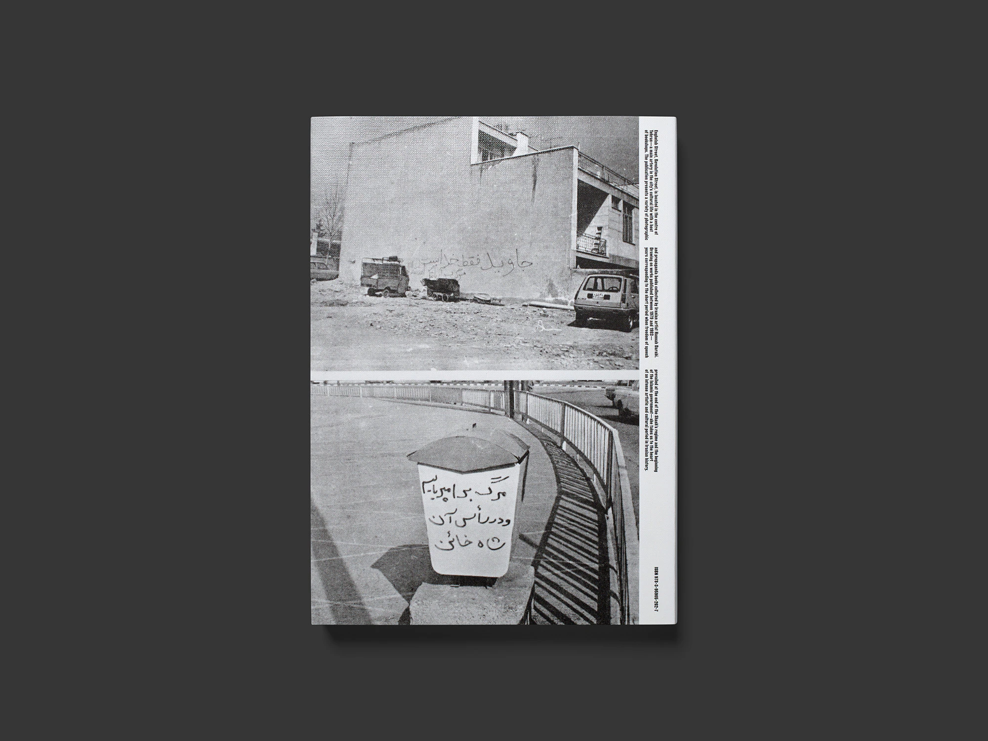 Un volume di ricerca di grande formato sul mondo dell’editoria in Iran nei turbolenti anni della svolta 1979–1983 brilla come libro d’archivio concettualmente chiaro, coerente e molto bello, che costituisce altresì un modello per la ricerca artistica. Una prima sezione di tavole quadricromatiche presenta all’incirca 40 volumi fotografici di natura politica in un layout uniforme, riportando una sintesi dei contenuti, ampi facsimile della prima e quarta di copertina e doppie pagine ridotte. Segue una parte stampata in viola con circa 100 manifesti programmatici politici, in genere quattro per pagina, mostrati con la copertina. Nell’ultima parte, più di un centinaio di pagine stampate su carta lucida, la ricercatrice combina estratti dei libri di fotografia con propri scatti dell’Iran contemporaneo riprodotti sempre a pagina intera. Frammezzate alle tre sezioni di tavole si trovano alcune pagine di testo che riportano, in un layout a due colonne, saggi, interviste a testimoni dell’epoca e una cronologia. L’organizzazione grafica ridotta all’essenziale è moderna e slegata dal materiale mostrato: ciò mette in risalto le pubblicazioni, ognuna con le proprie caratteristiche, e fa sì che pagina dopo pagina il volume sia una continua sorpresa nonostante la mole. Una forte affermazione della necessità e dell’importanza politica dei libri in un’epoca di fake news digitali.