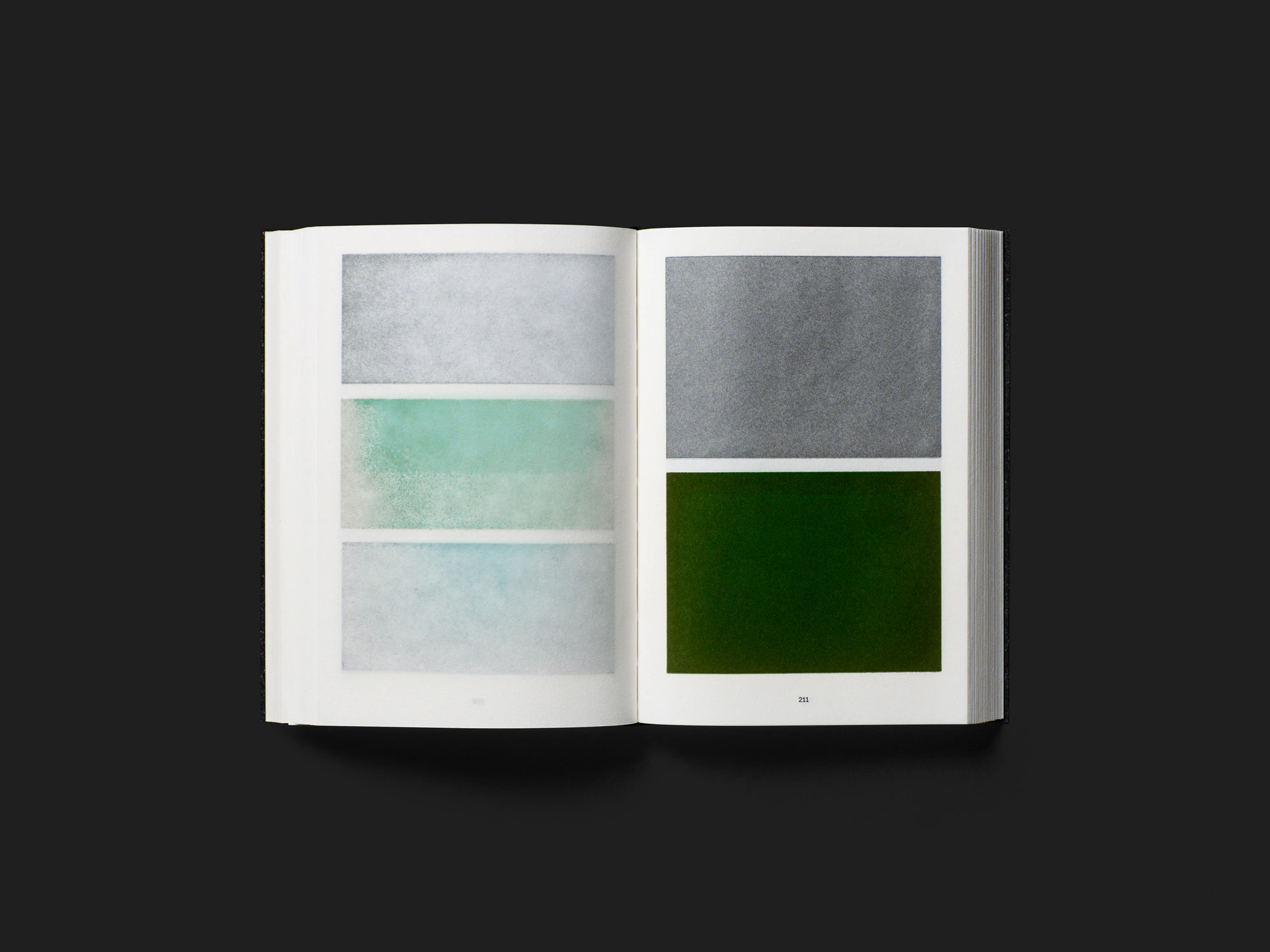 In un’auto-pubblicazione di piccolo formato con copertina goffrata in nero su nero, il tipografo Che Huber impiega più di 200 tonalità cromatiche come mezzo artistico di espressione e rimembranza, offrendo così un impressionante esempio di comunicazione senza parole. Ogni pagina destra mostra da uno a tre rettangoli dei colori più diversi, disposti sempre nello stesso modo, a richiamo di qualcuno con cui Huber ha collaborato nel corso degli anni. Soltanto un indice relegato alla fine del volume ne elenca i nomi – è l’opposto di una pomposa lista di «clienti» famosi: una dichiarazione d’amore per la collaborazione, piuttosto. Il fatto che i colori traspirino sulla facciata opposta perché la carta è molto sottile può essere inteso come una dichiarazione di design contro i rapporti di lavoro superficiali. A seconda delle proprie conoscenze pregresse e del punto di vista interpretativo, i singoli colori possono certamente raccontare intere storie. Le dimensioni contenute e la carta leggera impediscono all’oggetto di acquisire un carattere monumentale; sta in mano alla perfezione e presenta una buona flessibilità. Il cofanetto in cartone, insolitamente morbido e stampato con rettangoli neri, sembra n’elaborata confezione regalo.