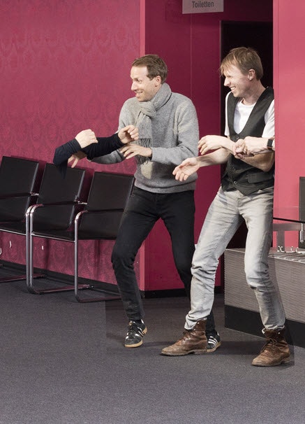 OHNE ROLF sono Jonas Anderhub e Christof Wolfisberg, che da una ventina di anni si sono fatti conoscere un po’ ovunque grazie alla loro «comicità squisita». Jonas Anderhub, nato a Lucerna nel 1976, dopo la formazione di maestro elementare ha frequentato per due anni l’école Internationale de Théâtre Jaques Lecoq e Le Samovar a Parigi. Successivamente si è esibito compre prestigiatore e attore-improvvisatore. Christof Wolfisberg, nato a Locarno nel 1976 e cresciuto a Stans, ha realizzato diversi progetti teatrali in qualità di attore e regista durante la formazione di maestro. Dal 1999 al 2003 ha studiato pedagogia teatrale all’attuale Scuola universitaria di belle arti di Zurigo. Le numerose distinzioni ricevute mostrano come OHNE ROLF riesca a divertire il pubblico anche al di là delle frontiere nazionali: nel 2004 hanno ricevuto tra l’altro il Premio svizzero per l’innovazione, nel 2014 il Deutscher Kleinkunstpreis e nel 2015 il Deutscher Kabarett-Preis. I loro programmi brevi sono stati proposti, oltre che in tedesco, francese e inglese, anche in mandarino per una tournée in Cina.
