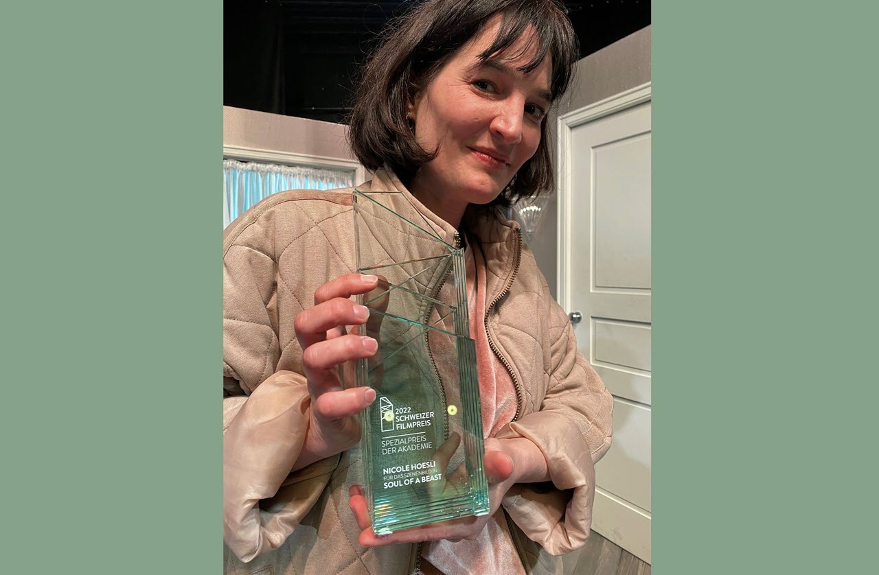 Con il suo spiccato senso per la rappresentazione visiva globale e la cura dei dettagli, Nicole Hoesli ha saputo realizzare una scenografia sempre nuova e sorprendente. Collaborando in modo creativo con i responsabili della regia e della fotografia ha creato uno spazio cinematografico che riunisce diversi ambienti, in cui si intrecciano armoniosamente sogno e realtà. La ludica leggerezza trasmessa dal lavoro di Nicole Hoesli e il coraggio di proporre un’originalità creativa che non si sottrae nemmeno al surreale contribuiscono significativamente all’atmosfera densa e a tratti magica che distingue «Soul of a Beast».