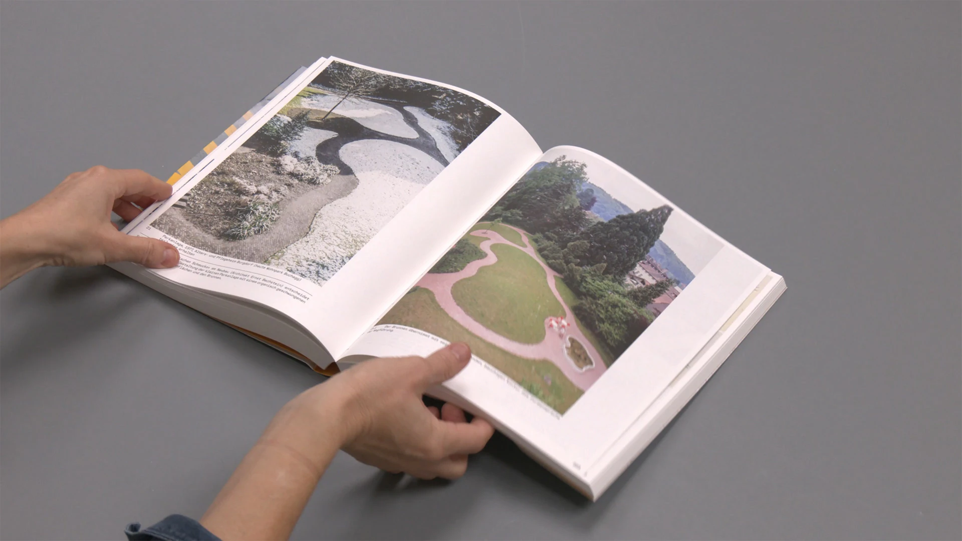 Un catalogo dal design sobrio conferisce all’ampio lavoro di una vita di Susi Berger (1938–2019) e Ueli Berger (1937– 2008) un aspetto sorprendentemente leggero, mettendo in risalto lo sfondo umoristico delle loro opere. La sottile sovraccoperta grigio-gialla con due risvolti sembra quasi fragile, ma insieme ai caratteri arrotondati e alla doppia carta gialla del risguardo crea un piacevole contrasto con il duro grigio architettonico che offre il contesto della maggior parte delle opere mostrate. Sei saggi e una dozzina di sezioni fotografiche sono disposti uno dopo l’altro senza alcuna gerarchia in layout sempre uguali, in modo che l’osservazione possa iniziare in qualsiasi punto. Le parti fotografiche si concentrano su singoli temi dell’opera e mostrano su ogni doppia pagina da due a cinque immagini di dimensioni e formati variabili, con didascalie ricche di informazioni. Il rigoroso allineamento di tutte le immagini agli angoli dell’ampia griglia di composizione crea al centro della pagina dei giocosi spazi bianchi. La grande varietà di rappresentazioni – schizzi, piani, modelli, viste ecc. – si integra alla perfezione.