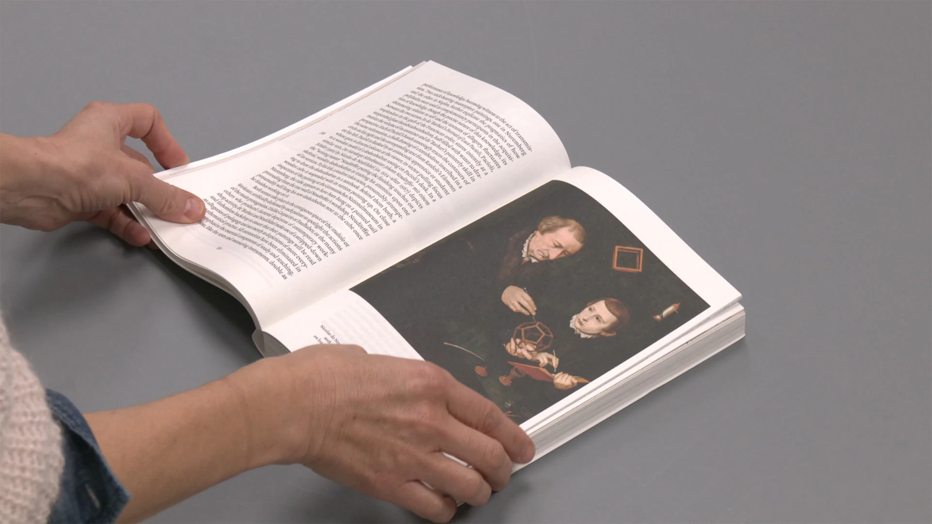 Uno studio scientifico sul fascino del XVI secolo per il poliedro colpisce per la sua vividezza storica, ma anche per la sorprendente contemporaneità. Il design «neoclassico » si discosta da tutta una serie di convenzioni usate per i libri di testo accademici e si sposa alla perfezione con il vasto materiale illustrativo. Essendo piuttosto grande come libro tascabile, le immagini (sempre una per pagina e spesso al vivo) si possono osservare in dettaglio. È esemplare in questo senso la copertina, sulla quale sono incollati, in prima e in quarta, due dettagli di dipinti in primo piano. I titoli dei capitoli sono disposti su doppia pagina in grandi lettere maiuscole che sembrano quasi incise nella pietra, dando l’effetto di intarsi che inducono una pausa nel flusso di lettura. La rilegatura aperta fa poggiare molto bene il libro, e per dare a tutte le immagini più spazio possibile le didascalie scivolano, dove necessario, sulla pagina di testo adiacente. Un disegno estremamente particolareggiato e di grandi dimensioni è stato ripiegato su se stesso e incollato su una pagina del libro, e può essere riaperto per essere osservato. La geometria gioca un ruolo anche nell’organizzazione del libro, e lo si nota in molte pagine, nell’approccio giocoso (e talvolta ironico) agli spazi bianchi, alle proporzioni e alle armonie. In tutto questo il libro resta molto accessibile e piacevole da leggere.